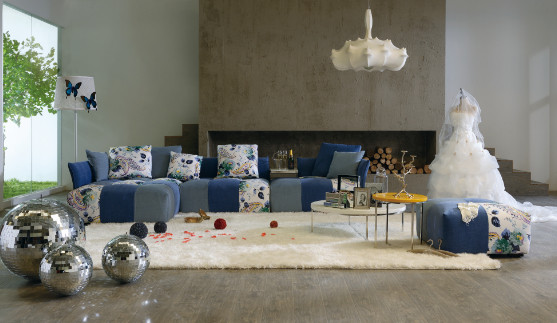 温柔的材质,柔媚的花朵图案,轻盈的淡雅色彩,都是新一季“造梦”主题的关键所在。高贵的粉蓝、粉紫,在浅浅反光效果的珍珠映衬下,彰显的是不张扬的淑女姿态;精致的印花图案轻柔婉转,圆润的线条优美多姿,都构成了这季沙发唯美多情的梦幻气质。柔和的蓝调,既清新淡雅、充满梦幻,也非单纯的朴素无华,当其在色调的深浅交替中,映衬出佩斯利花纹与牡丹的团团花卉,竟带来意想不到的唯美效果。色块的拼接使整体纯洁可爱、惹人遐思,特别是经由饱满圆润的沙发弧度衬托,更显露出柔和典雅的曲线美。沙发的色彩与造型通过“柔美”这一主题得以交汇,其中的清澈、明媚与温馨,映照出女性对浪漫幸福的渴望。在这里,心灵躺在柔软安适的座椅中,一扫都市的喧嚣,慢慢靠岸。