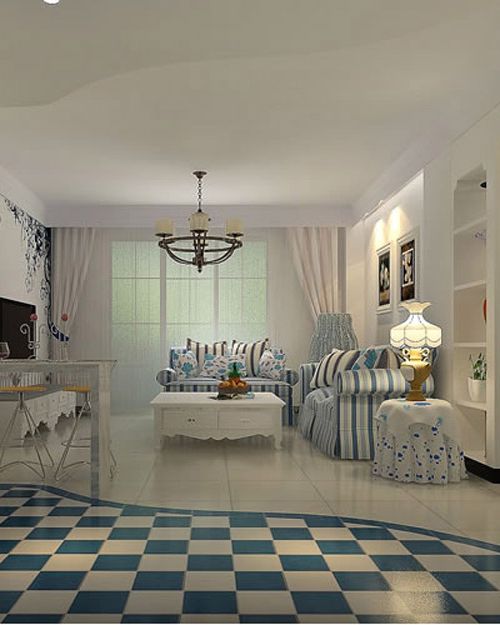 也就是人们常说的海洋风格,以白、灰、天蓝色为主色,体现海天一色,宽广的情怀,使用拱廊拱门点缀