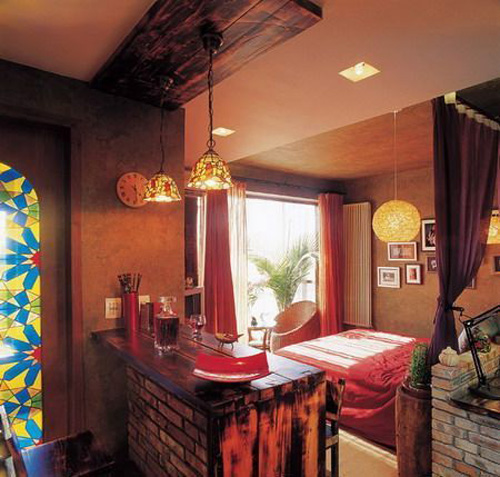 带有浓郁的宗教色彩,颜色以深沉为主,如深紫色、深棕色。以其来自热带雨林的自然之美和浓郁的民族特色风靡世界。它广泛地运用木材和其他的天然原材料,如藤条、竹子、石材、青铜和黄铜,局部采用一些金色的壁纸、丝绸质感的布料,使整个家居生活都充满了来自原始自然的纯朴之风。
