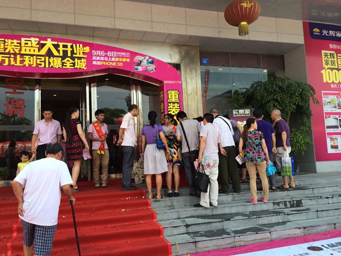 9月6-8日福永光辉盛大开业,1000万让利引爆全城。此次活动由实惠家于光辉家具福永店联合举办。在此中秋佳节,从各地赶来的顾客,与实惠家人齐聚光辉家具福永店,欢度这团圆节。活动3天,全场开业钜惠,预存50=2000元+太空枕+免费现金红包!满额就送iphone5s/液晶电视/ipad mini/平板电脑等,还有48寸液晶、空调、平板电脑、对流扇等大奖!下面就由小编带您细细回顾。.jpg)