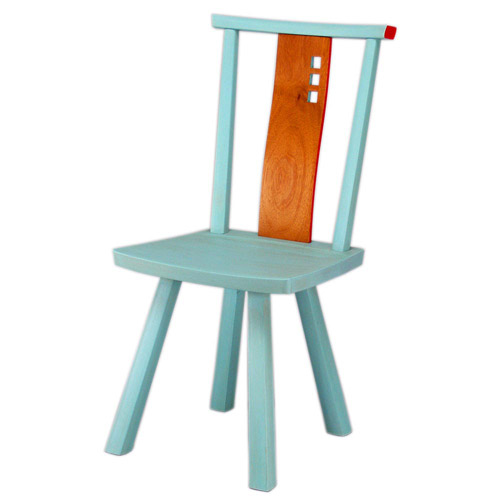 编辑点评:复古造型搭文艺范配色,展现作品个性。薄荷绿搭配桔色、红色,最大程度提升薄荷绿的表现力,椅背上三个镂空提升座椅设计感,给人复古但有新意的感觉。