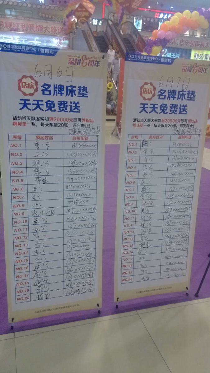 每天下午2点不到,购物满2万即可免费获赠品牌床垫的登记榜已被填满!