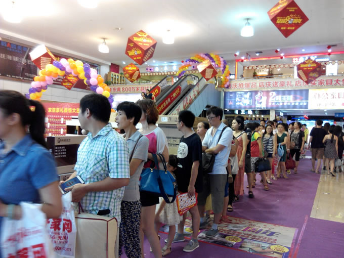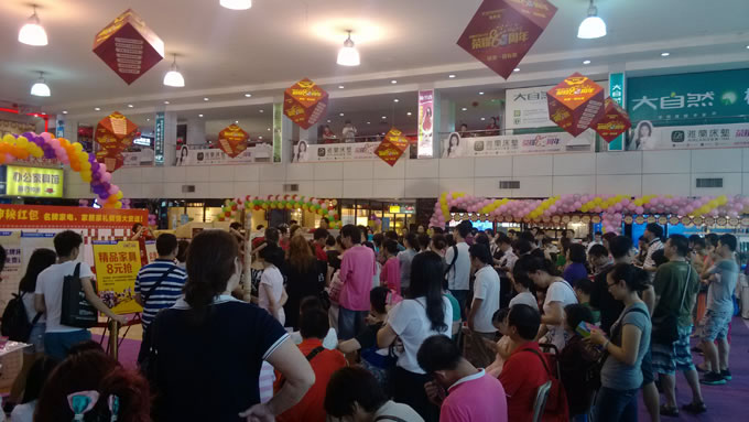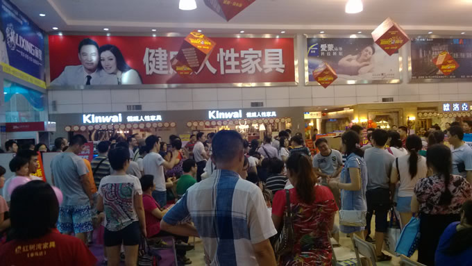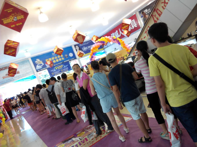场内到处可见忙得不可开交的导购员,或在介绍产品,或在写单,或在带着顾客奔向收银台!
