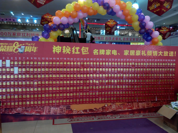 业主一走进番禺红树湾,都会被眼前的大礼以及红包墙所吸引!看着精心装扮的店面,看着琳琅满目的商品,就连现场的空气都夹杂着浓烈的喜庆气息。