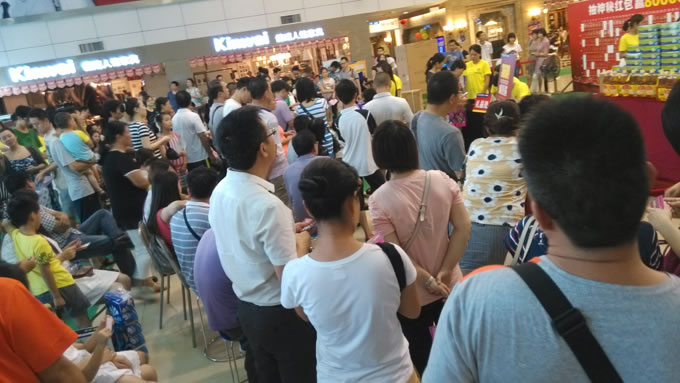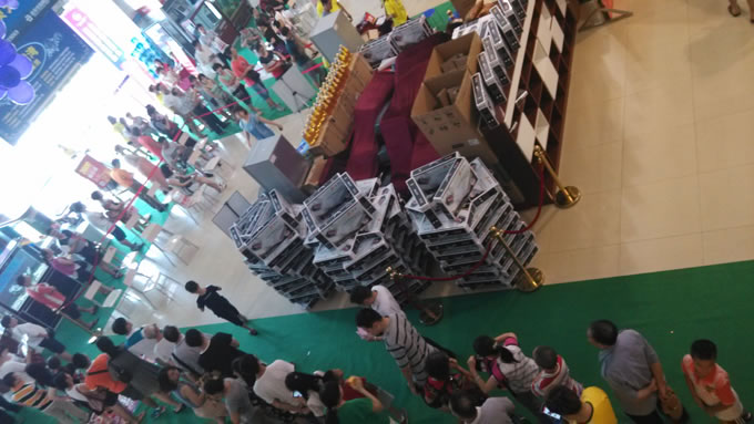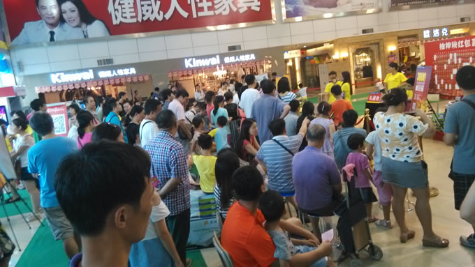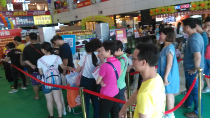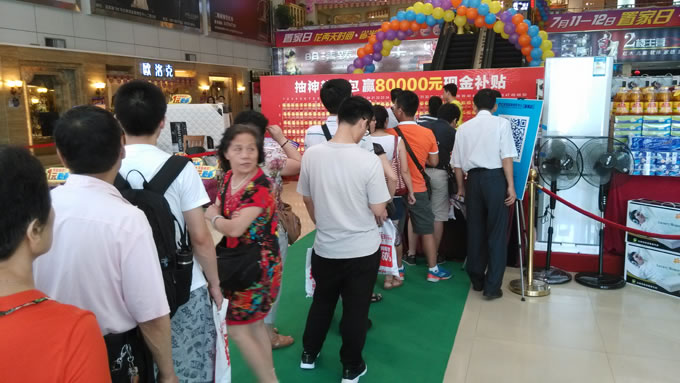 一听到广播说抽奖即将开始,心急顾客们都抓紧时间到我们的收银台下单,领取我们的抽奖券。呀!我们的工作人员都有点忙不过来了。
