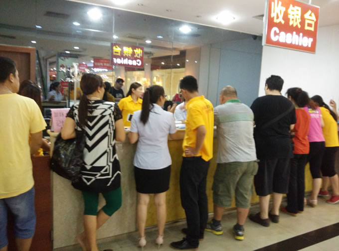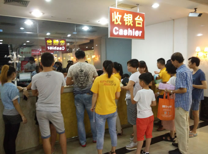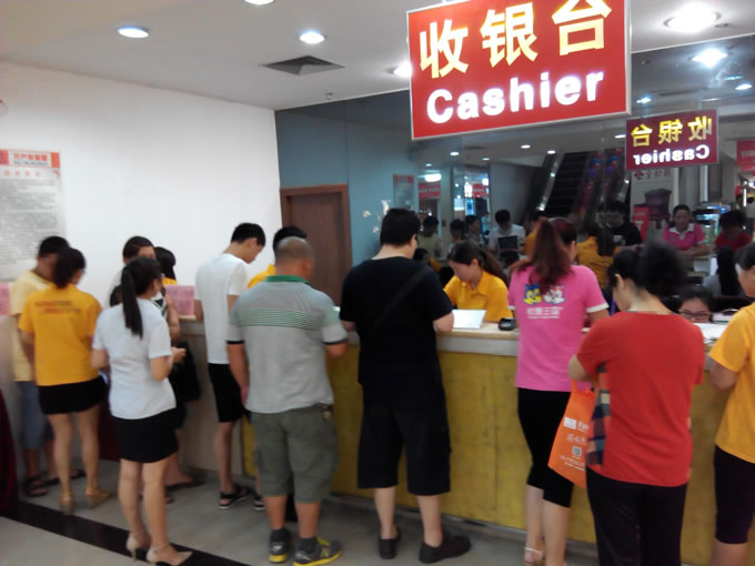活动即将结束,顾客仍坚守阵地,不到最后一刻不离开。收银台的美女们也只能延迟下班!