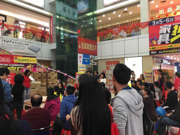 新大明家居是深圳的老字号家具卖场,深得业主信赖,商场内各类家具应有尽有,本次活动更是吸引了大量业主前来选购家具。