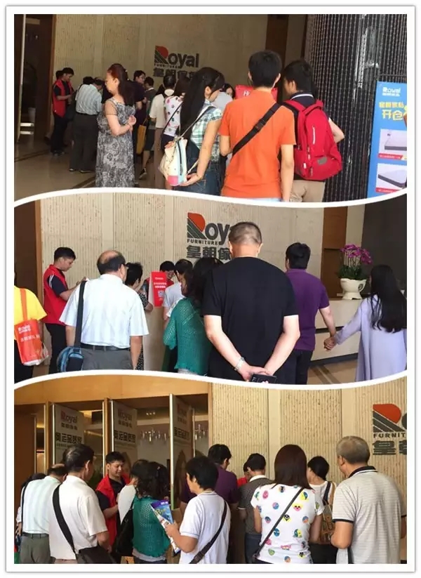 9月16日实惠家与香港皇朝家私集团强强联手打造“工厂开仓8小时”,大派福利!100%工厂直销,100%实惠,来就免费抽大床;下单满额再送iPhone6s、床垫、羽绒被等豪礼,让业主乐此不疲、收获颇丰。店内人流如潮,现场气氛十分热烈。