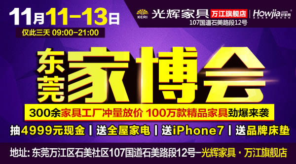 万江光辉家具十分大方,满额即送iPhone7、空调、液晶电视、三门冰箱、洗衣机等豪礼!