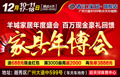 12.10-11香江家居旗舰店“家具年博会”轰动羊城,12.17-18快来买!