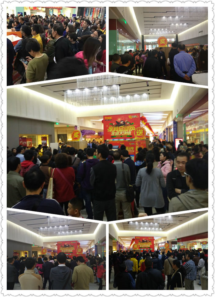 场内各通道,各楼层都是人挤人的,来看全屋家具的、来买客厅沙发的、来选酒柜的,