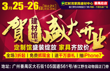 是:红树湾番禺总店 贺建材馆 盛世开业!
