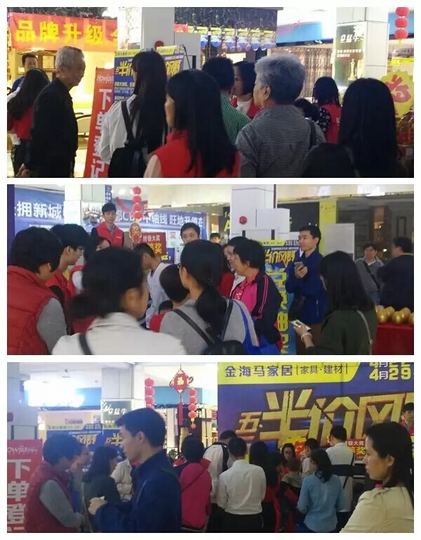以上内容来自4月22-23日花都金海马家居“五一•半价风暴”大型活动的现场一角。近期有家居需求却没能来到现场的业主们也不用灰心,实惠家近期还会有新的家居活动陆续上线,您可以直接在我们实惠家相应活动页面上报名,到时会有客服人员联系您,为您讲解详细活动优惠;您也可以拨打实惠家客服电话:020-87565320 或登录我们的官网 http://www.shihuihome.com 就可以报名参加下次活动了。