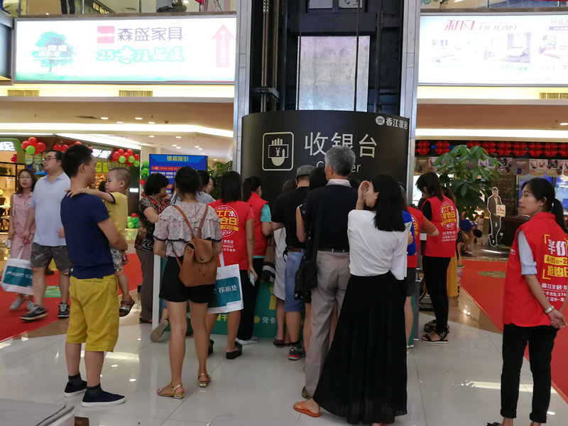 商场开门,义不容辞立马下单!火速抢占床垫!敢情比工作人员还勤快!收银员已经无法抵挡顾客的热情了!