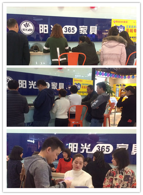 排队交款的业主比肩接踵,收银区交款忙得不可开交!下单、下单!迎新春、添家具!