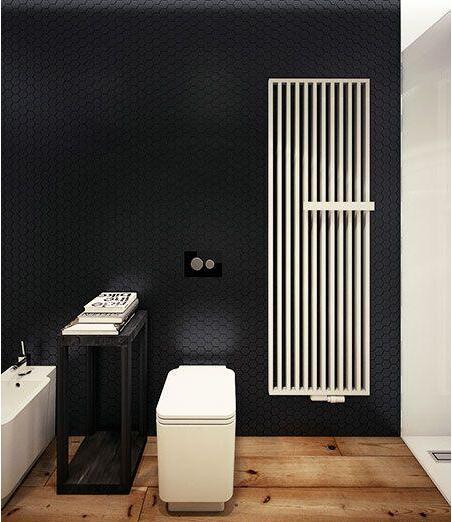 卫浴间因为需要注重防潮问题,墙面并未用到黑色木质。暖气片是一道装饰,坐便器的左侧置有一个简单小书架,让屋主在沐浴之时也能静享片刻阅读。