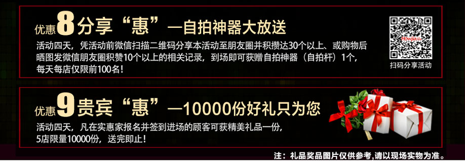 特别提示:应举办方规定,实惠家是本次活动唯一指定报名登记渠道,所有参与业主须在本页面(上方左侧或下方图标)报名,报名登记成功方可享受活动的所有优惠环节,活动前会有客服致电告之详情。如对报名成功与否有疑问,可致电020-87565320查询→