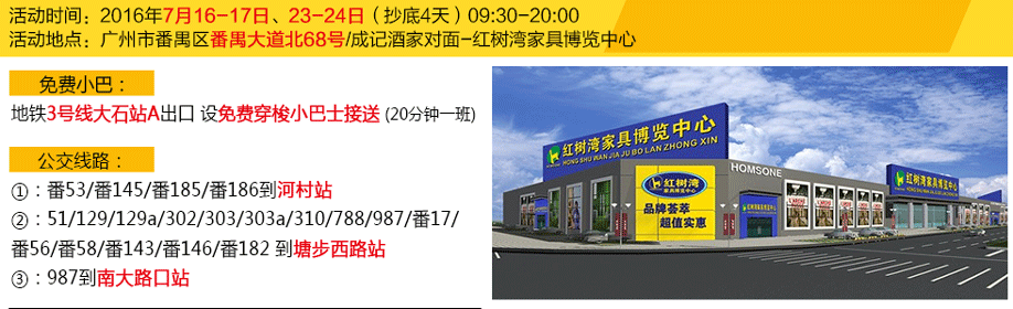 【家具】7月16-17/23-24日红树湾首届家博会-番禺大道店
