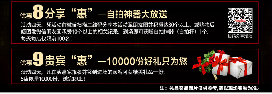 特别提示:应举办方规定,实惠家是本次活动唯一指定报名登记渠道,所有参与业主须在本页面(上方左侧或下方图标)报名,报名登记成功方可享受活动的所有优惠环节,活动前会有客服致电告之详情。如对报名成功与否有疑问,可致电020-8756532查询→