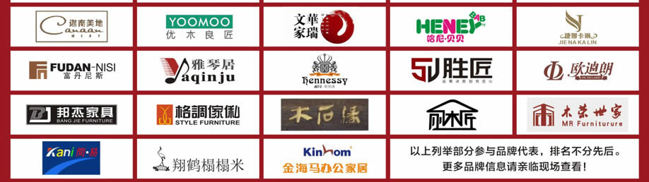 板式板木:皇凯、优木良匠、邦杰家具、小康人家、简道家、迦南美地、尚木、美临门、蜀栢世家、安琦美居、商翼家具、宜木构思、澳玛、A家·韵采、欧罗·丹美、名仕乡村、红苹果、欧瑞莫兰迪、森盛、和风·韵、和风·轩尼诗、和风·南美胡桃、和风·酷比家、和风·艾纳菲、文华、胜匠、吉祥·百得、非色