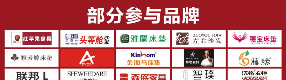 客厅沙发:联邦米尼、左右、芝华仕、格调、雄邦、金富来、偌琦、雅曼迪、雅琴居、傲缇、有家有爱、富牌、罗图